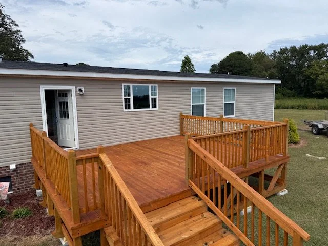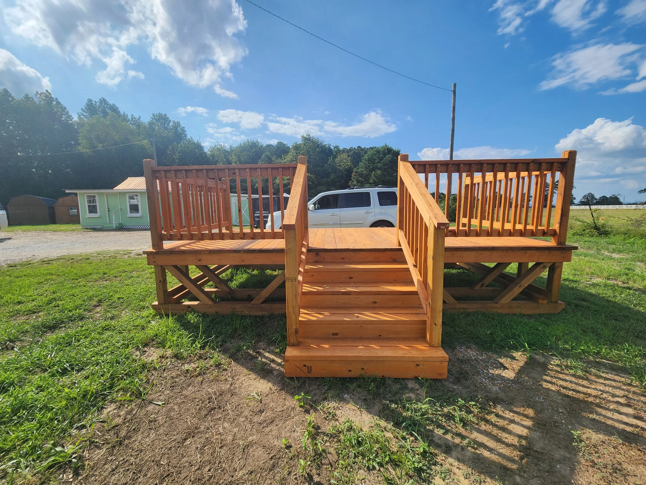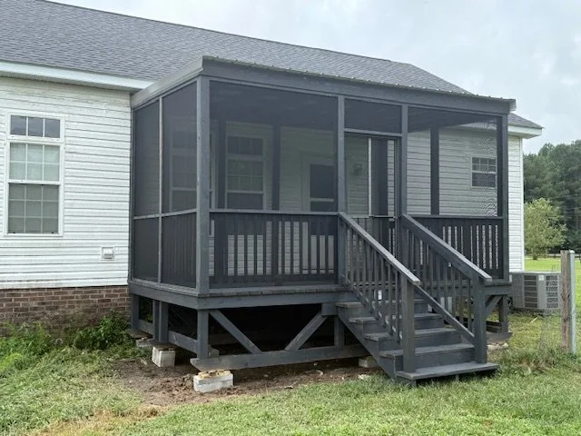 Whether you’re looking for a small entry platform, a full wraparound porch, or a covered entertaining space, we offer custom sizing, stain options, railing styles, steps, ramps, and screened-in upgrades to fit your lifestyle. Every deck is built to order, using quality materials designed to last through every season.